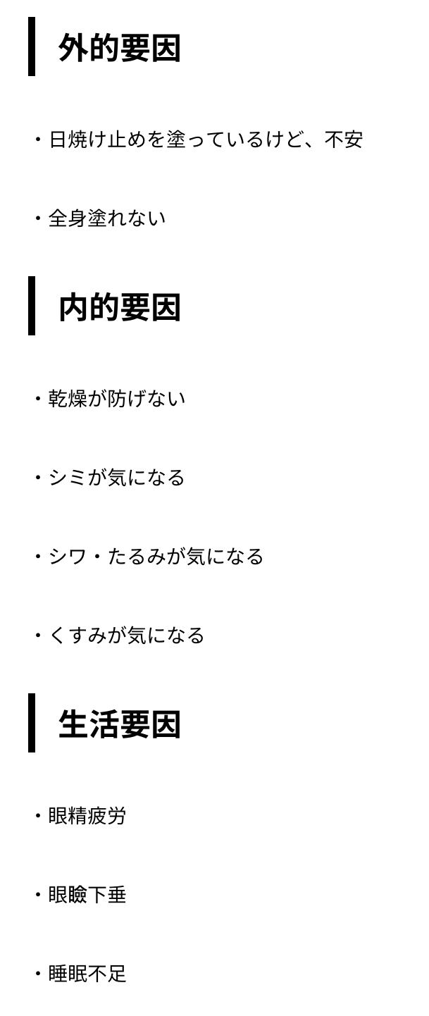 ✅ 乾燥が防げない ✅ シミが気になる ✅ シワ・たるみが気になる ✅ くすみが気になる
