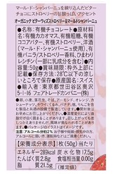 植物原料のみで製造した「ベジチョコ」ラインです。マール・ド・シャンパーニュを練り込んだビターチョコに、甘酸っぱい有機イチゴを散りばめました。