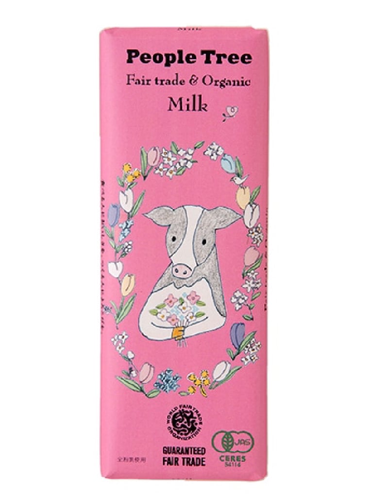 ボリビアのカカオ豆やフィリピンの黒砂糖など、立場の弱い小規模農家を守るフェアトレード原材料を使用しています。また、ベースとなるカカオ、ココアバター、黒糖、粗糖をはじめ、トッピングもすべて有機原材料を使用。ミルクチョコは、世界で最も厳しい動物保護法を持つスイスで放牧によってのびのびと健康的に飼育された乳牛の、最高品質ミルクがおいしさのベース。さらに粉状ヘーゼルナッツで深い味わいをプラスしています。